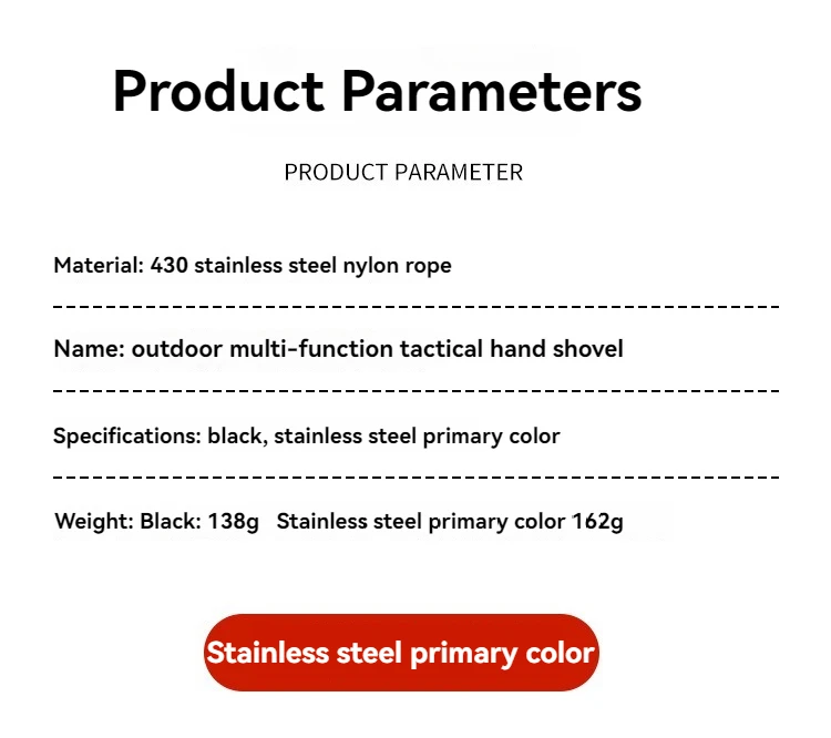 Hard tool steel material, high-strength wear-resistant, polished surface, not easy to rust. It is strong enough to take on the most difficult work. Equipped with a protective bag, you can easily put it in a bag or backpack for outdoor use.