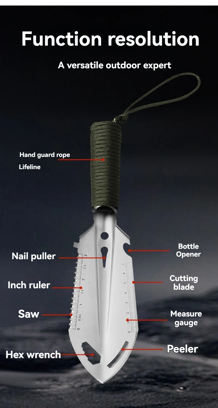 It is very suitable for various gardening tasks, such as digging, weeding, loosening, planting, transplanting, etc. There are two sharp edges, not only very suitable for digging holes, but also for cutting branches, ropes, etc.